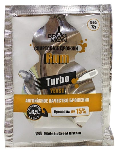 Спиртовые дрожжи Bragman Rum Turbo позволят вам приготовить брагу высочайшего уровня и качества на основе или совместно с мелассой. При перегонке браги вы получите великолепный букет аромата и будете приятно удивлены качеством получаемого продукта. Содержат фермент глюкоамилазы, который разбивает декстрины из мелассы.